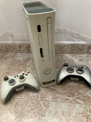 Consola Xbox 360 clásica de color blanco que incluye todo su cableado, auriculares de diadema oficiales y dos mandos: uno blanco y otro plateado, junto con todos sus cables. La consola se vende tal y como se ve en las imágenes. Uno de los mandos no tiene batería, pero se puede conectar por cable. Los mandos pueden presentar desgaste en la botonera y es posible que algún botón se atasque o no funcione al 100 %, algo normal debido al paso del tiempo; aun así, por lo poco que la he probado, funciona bastante bien, mas detalles por privado, no se admiten devoluciones, todo queda visto y descrito, hago envíos.