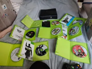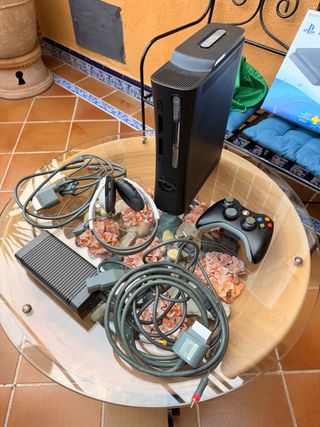 Consola Xbox 360 modelo Fat con accesorios y juegos. - Incluye 2 mandos originales. - Varios juegos de Xbox 360. - Disco duro o disco de juegos. - Cables de conexión.