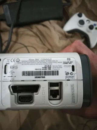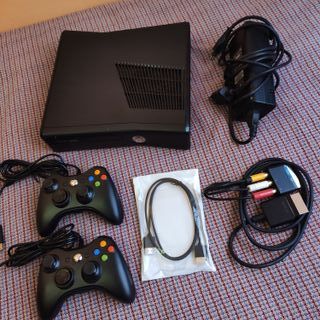 Consola Xbox 360 Slim 4GB. Incluye dos mandos nuevos. Cable HDMI nuevo. Cable AV con euroconector para conectar a televisión de tubo CRT original Microsoft. Fuente de alimentación de consola original Microsoft. Sin juegos. Tiene marcas típicas pero todo funciona bien, consola, lector de discos, usbs, botones, etc; todo con buen funcionamiento.