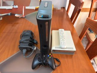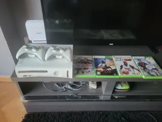 Xbox 360 como nueva pasta termica recien cambiada, de regalo doy un usb con el que puedes “añadir juegos”, tambien tengo el lector de dvd junto con el mando dicho mando se puede usar sin problemas en la xbox
