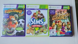Tres juegos en buen estado para Xbox 360 con Kinect. - Kinect Adventures! - Kinectimals (la carcasa tiene un golpecito que se ve en las fotos, pero el disco esta perfecto, no esta afectado) - Los Sims 3 ¡Vaya Fauna!
