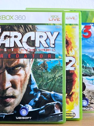 Tres juegos de la saga Far Cry para Xbox 360 en buen estado. - Far Cry Instincts Predator - Far Cry 2 - Far Cry 3 Muy buen estado, cajas y sus manuales. El disco de Far Cry 2 presenta algunas marcas de uso superficiales. Funciona perfectamente.
