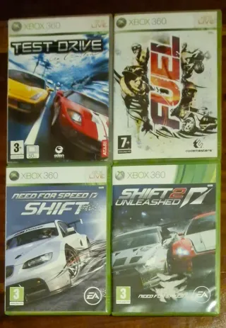 Conjunto de cuatro videojuegos para Xbox 360. Juegos en muy buen estado con sus manuales y completamente en castellano tanto menú como audio. - Need for Speed: Shift - Need for Speed: Shift 2 - FUEL - Test Drive: Unlimited Envíos por wallapop