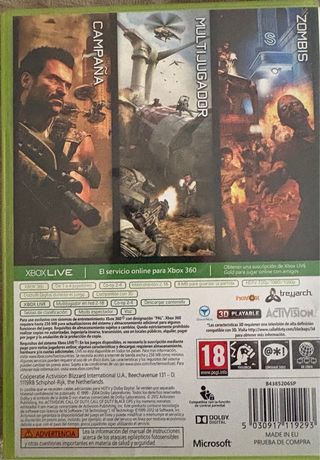 Videojuego Call of Duty Black Ops II para Xbox 360. - Clasificación PEGI 18. - Juego completamente en castellano. - Incluye carátula y disco.