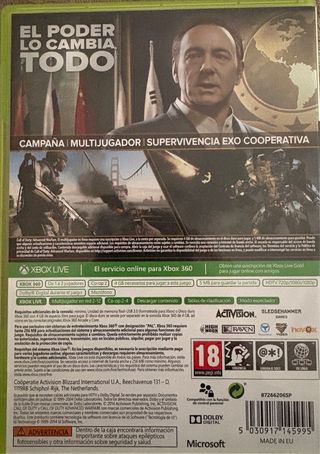 Videojuego Call of Duty: Advanced Warfare para Xbox 360. - Juego de disparos en primera persona. - Edición completamente en castellano. - Requiere almacenamiento para contenido adicional.