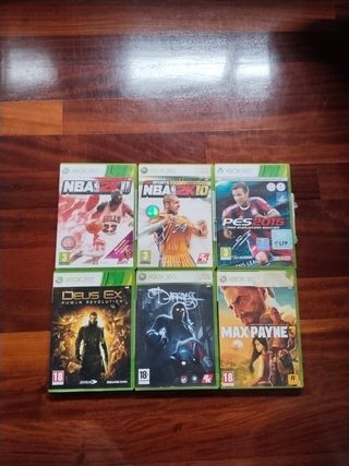 Vendo seis juegos de Xbox 360 en muy buen estado. - Incluye: NBA 2K10, NBA 2K11, PES 2015, Deus Ex: Human Revolution, Max Payne 3 y Dark Void. - Perfectos para disfrutar de horas de diversión.