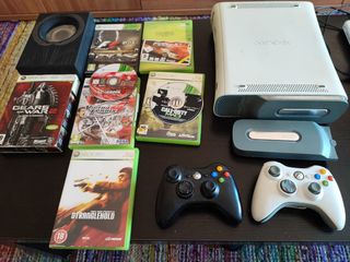 Xbox 360 con 2 mandos y juegos