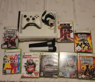Consola Xbox 360 con disco duro de 120GB. Incluye accesorios y juegos. - 8 juegos - 2 micrófonos - Cámara - 1 mando