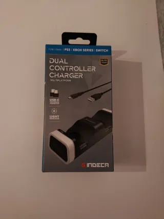 Cargador dual para mandos de consolas. - Compatible con PS5, Xbox Series y Switch. - Conector USB-C universal. - Indicador de luz. - Cable incluido - Sin abrir