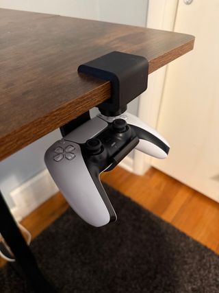 Este soporte se fija fácilmente debajo de tu escritorio para colgar tu mando. - Diseño discreto y funcional. Color a elegir - Compatible con mandos PS5 y Xbox. - Material resistente.
