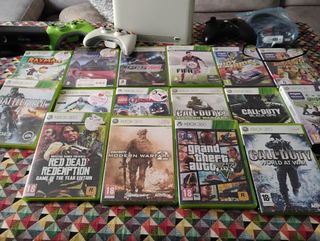 Consola Xbox 360 Negra + Mando y Juegos ,