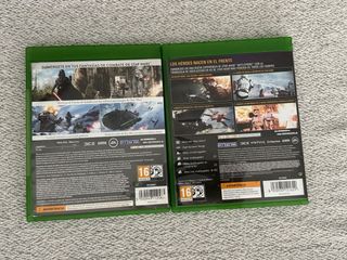 Lote con la saga completa de Star Wars Battlefront para Xbox One (Compatibles con Series X). Incluye: Star Wars Battlefront Star Wars Battlefront II (Incluye modo campaña/historia). Perfectos para jugar online o en pantalla dividida. Los discos funcionan perfectamente. Precio por el pack completo. Una ganga. Hago envíos bien protegidos.