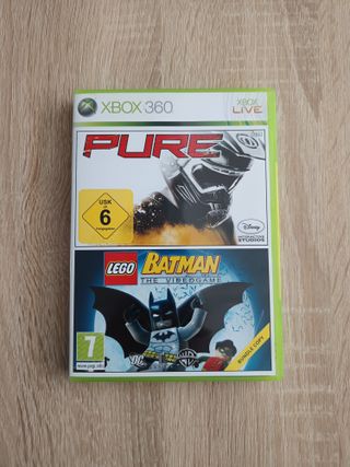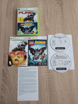 Lote de los juegos Pure y LEGO Batman The Videogame para Xbox 360 en buen estado de conservación. Retrocompatibles con Xbox One y Series X. Incluye discos y manuales de instrucciones. Probados y testeados para confirmar que funciona perfectamente. 📦 Envío por Correos. Más artículos en mi perfil. 📩 Cualquier duda.