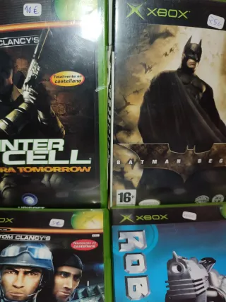 Se vende lote de 6 videojuegos para la consola Xbox clásica. Precios en las fotos - Tom Clancy's Splinter Cell: Pandora Tomorrow - Batman Begins - Gene Troopers - Tom Clancy's Rainbow Six 3 - Robocop - Still Life