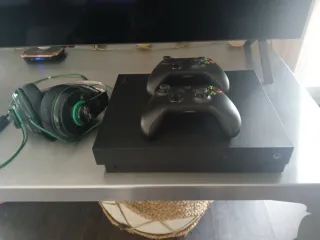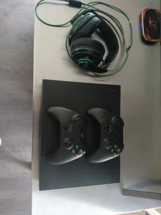 Vendo consola Xbox one x.Con dos mandos.Regalo cascos de gamer Por no usar.Esta nueva prácticamente.