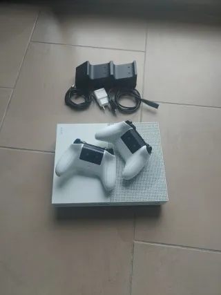 Consola Xbox One S con dos mandos. - Consola en color blanco. - Un mando en color negro. - Un mando en color blanco. - Batería de mando Xbox La vendo porque estoy ahorrando para pagarme la universidad
