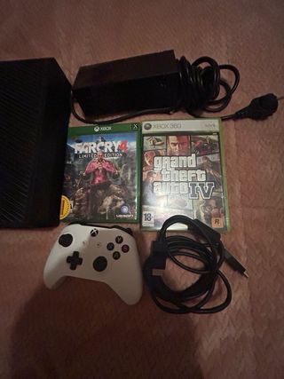 Consola Xbox One en color negro, junto con tres videojuegos,un mando y todos los cables - Grand Theft Auto: The Trilogy - The Definitive Edition - Watch Dogs 2 - Forza Horizon 5 La compre hace 1 año y la vendo por falta de uso, funciona perfectamente.
