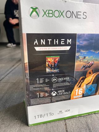 Consola Xbox One S de 1TB con el juego Anthem: Legion of Dawn Edition. 2 x game controllers (black and white) - Incluye 1 mes de EA Access. - Incluye 1 mes de Xbox Live Gold. - Capacidad de 1TB. - Salida de video 4K HDR y Blu-Ray.ww
