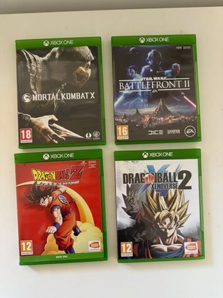 Lote de cuatro videojuegos para Xbox One. - Mortal Kombat X - Star Wars Battlefront II - Dragon Ball Z: Kakarot - Dragon Ball Xenoverse 2