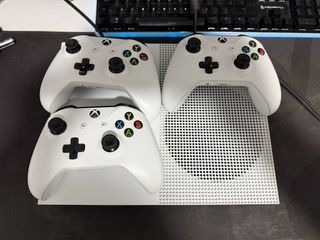 Consola Xbox One S de 1TB en color blanco. Incluye tres mandos y varios juegos. Incluye: • Consola Xbox One S 1TB • 3 mandos originales • 1 mando con el joystick izquierdo sin goma, pero funciona • Base de carga doble para mandos • 1 batería recargable • 1 batería Xbox original • Cable de alimentación • Cable HDMI • Cable de carga para mando • Funda protectora para la consola 🎮 Juegos incluidos: • GTA V • Forza Horizon 4 • Forza Motorsport 5 • Ryse: Son of Rome • Titanfall • Halo: The Master Chief Collection • FIFA 18 (Ronaldo Edition) • NBA 2K21 ( series X) comprado por error