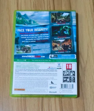 Far Cry 3 para Xbox 360 en formato PAL. Es la versión PAL UK, lo que significa que la carátula y el manual están en inglés, pero el juego está totalmente en castellano (voces y textos en español, como se ve en la foto). El disco tiene rayones de uso normal, pero está comprobado y funciona perfectamente de principio a fin. Caja y manual en muy buen estado, bien conservados. El juego es retrocompatible, por lo que puedes jugarlo también en tu Xbox One o Xbox Series X. Ideal si buscas jugar a esta joya de Ubisoft de forma económica. Envío por Wallapop o entrega en mano. #FarCry3 #Xbox360 #Microsoft #Ubisoft #Retrocompatibilidad