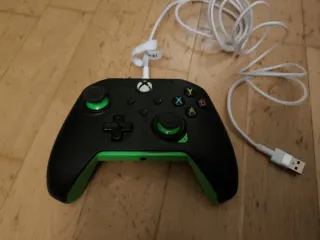 Mando para Xbox One con conexión por cable. Diseño en color negro con detalles en verde. - Conexión USB. Incluye cable de 2 metros - Botones frontales A, B, X, Y. - Cruzeta direccional.