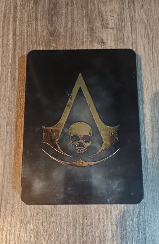 Steelbook de Assassin's Creed IV: Black Flag para Xbox One. Presenta un diseño metálico con el icónico símbolo de la hermandad y una calavera. - Edición Steelbook. - Para consola Xbox One. - Incluye juego, banda sonora, postales y libros de ilustraciones.
