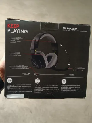 Auriculares gaming Astro A10 de Logitech, diseñados para una experiencia de juego inmersiva. Los vendo porque me vinieron con un volante que compre y no los necesito. - Compatibles con PC, Mac, PS5, Xbox Series X/S, Switch y móviles. - Micrófono con función flip-to-mute. - Cable desmontable de 3.5 mm.
