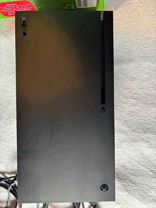 Consola de videojuegos Xbox Series X en color negro. - Diseño vertical y compacto. - Acabado mate. Caja original y accesorios de fabrica Garantía hasta 30 de junio del 2026