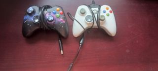 Dos mandos de Xbox 360 en buen estado, uno negro con diseño espacial y otro blanco. Se incluyen 5 juegos: FIFA 15, Mafia II, PES 2010, UFC 2010 , FIFA 18 y PES 2008 Mandos con cable. - Juegos en perfecto estado.