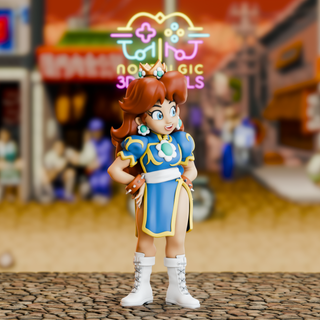 Figura coleccionable que fusiona a la Princesa Daisy de Mario Bros. con el icónico diseño de Chun-Li de Street Fighter. . Fabricada en Impresion 3D de alta calidad. - Diseño inspirado en Chun-Li. - Detalles en color azul y amarillo. - Corona y pendientes característicos de Daisy. Palabras Clave: Sega , Nintendo, Sony, xbox. Juego, Retro, dragonball, onepiece, naruto, mario, sonic, goku, vegeta, concola, coleccionismo. anime, manga, gaming