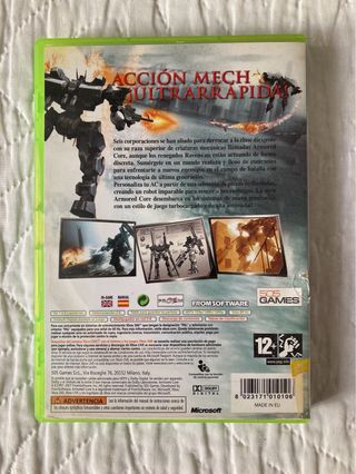 Videojuego Armored Core 4 para Xbox 360, de FromSoftware. El juego se vende tal y como se ve en las imágenes; presenta algunos toques en la carcasa y en el papel, nada grave. Funciona perfectamente. Es un título ya bastante raro de encontrar. No se admiten devoluciones. Hago envíos.