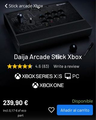 Mando arcade Nacon Daija para Xbox / PC. - Diseño inspirado en las máquinas arcade. - Joystick y botones de alta precisión. - Superficie texturizada para un mejor agarre. Como nuevo, factura de la web oficial de hace 2 meses (10/11/2025). Se vende por no usar, utilizado un par de veces. Se entrega con su caja, contenido original, factura y restrictor octogonal Sanwa. Preferible trato en mano o envío a cargo del comprador previo pago. No negociable
