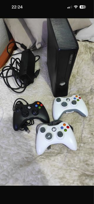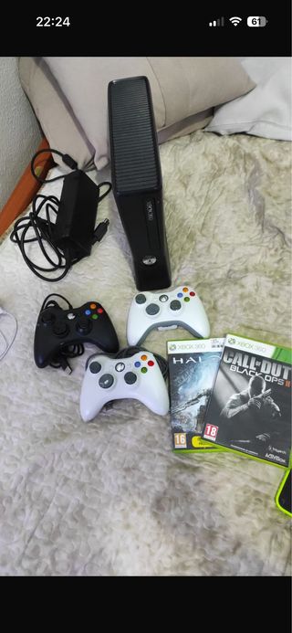 Consola Xbox 360 con accesorios y videojuegos. - Incluye consola Xbox 360. - Tres mandos (uno negro y dos blancos). Uno de ellos es original que lo compre aparte. - Juegos: Halo y Call of Duty Black Ops II.