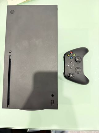 Consola Xbox Series X en color negro. Incluye mando. - Menos de 5 horas de uso - Diseño vertical y compacto. - Puerto USB frontal. - Batería recargable