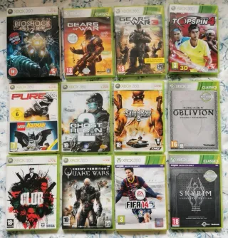 Lote de 12 videojuegos para Xbox 360. - BioShock 2 - Gears of War - Gears of War 3 - Top Spin 4 - Pure - Lego Batman - Ghost Recon Advanced Warfighter 2 - Saints Row 2 - Oblivion - The Club - Enemy Territory Quake Wars - FIFA 14 Se envía por fuera por correos. Seriedad