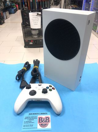 Consola Xbox Series S en color blanco. - Diseño compacto y moderno. - Ventilador de gran tamaño para una óptima refrigeración. - Puerto USB frontal. - Sin mando pero con tarjeta 1 tb Sólo venta no intercambios.