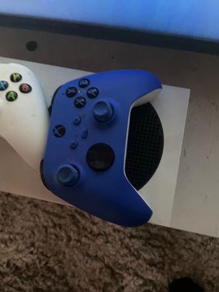 Consola Xbox Series S en color blanco con un mando azul. - Diseño compacto y moderno. - Incluye consola y 2 mandos. El azul nuevo recién sacado de la caja