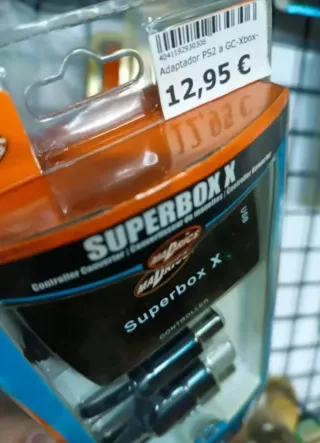 Adaptador de mandos Superbox X de Mad Catz. - Compatible con mandos de PS2, GameCube y Xbox. - Conexión USB.