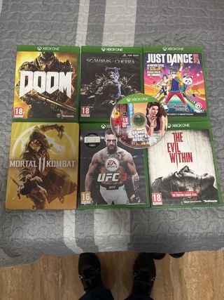 Lote de videojuegos para Xbox One. - DOOM - Sombras de Guerra - Just Dance 2018 - Mortal Kombat 11 - UFC 3 - The Evil Within - Grand Theft Auto V (disco suelto)