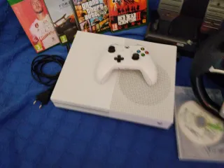 Consola Xbox One S en muy buen estado, lista para disfrutar. - Incluye dos mandos inalámbricos. - Se acompaña de cuatro videojuegos: Far Cry 6, Forza Horizon 4, FIFA 17 y Red Dead Redemption 2. - Con caja original.