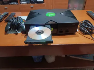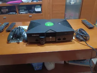 Consola Xbox clásica en color negro. Este modelo incluye la posibilidad de instalar Linux para ampliar sus funcionalidades. Linux instalado - Incluye mando y cables. - Diseño icónico de la primera Xbox.