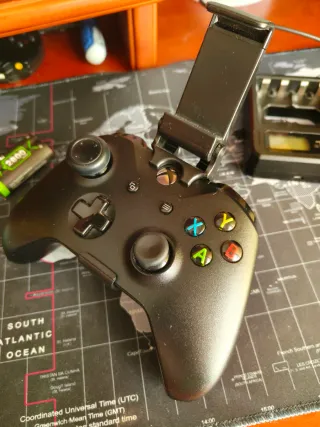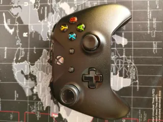 Mando de Xbox One en color negro con un pequeño golpe el mango que no afecta al funcionamiento. Total compatibilidad con PC, Xbox, Android, y IOS - Mando de Xbox One. - Soporte para móvil. - Baterías recargables con estación independiente. -cable original de Xbox. -Caja original pero del modelo blanco. Precio negociable.