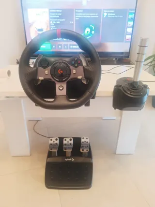 Volante G920: Force feedback de doble motor. Rotación de 900° (como un volante real), paletas de cambio en acero inoxidable y recubrimiento de cuero cosido a mano para mayor comodidad y durabilidad. Pedales ajustables: Tres pedales (acelerador, freno progresivo con resistencia realista y embrague) con base antideslizante y sensibilidad personalizable, ofreciendo control preciso y feedback táctil superior. Palanca de cambios Driving Force Shifter: 7 velocidades. Funciona en Xbox y PC. Poco uso, no recuerdo donde dejé la caja. Lo vendo porque ya tengo otro Precio negociable Las marchas y pedalera que están nuevas valen para todos