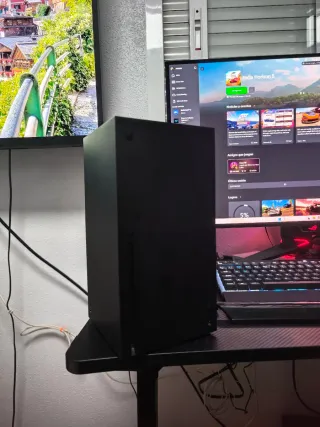 Consola Xbox Series X en color negro. - Diseño vertical y compacto. La vendo por qué no la uso funciona perfectamente nose si llevara unas 40h de funcionamiento como mucho incluye el black ops 6 en disco.