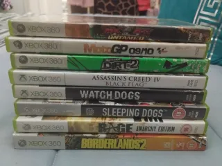 Lote de 8 videojuegos para XBOX 360. - F1 2009 - MotoGP 09/10 - Colin McRae: Dirt 2 - Assassin's Creed IV: Black Flag - Watch Dogs - Sleeping Dogs - Rage: Anarchy Edition - Borderlands 2