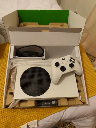 Consola Xbox Series S en color blanco con 512GB de almacenamiento. Incluye: - Consola. - Mando inalámbrico. - Cable de alimentación. - Cable HDMI. - También compré un cargador inalámbrico para el mando que va por carga, para no usar las pilas, que también lo incluyo en el precio. Poco y muy buen uso de la consola. Con su caja original.