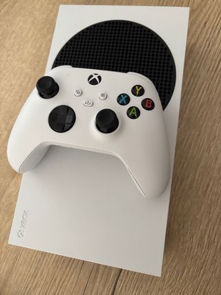 Consola Xbox Series S con almacenamiento de 512GB. Incluye mando inalámbrico con bateria recargable Incluye los cabes de alimentación y hdmi En buen estado, únicamente tiene un pequeño golpe en una esquina apenas visible tal y como se ve en las fotos. Funciona a la perfección, en venta porque no la utilizo.
