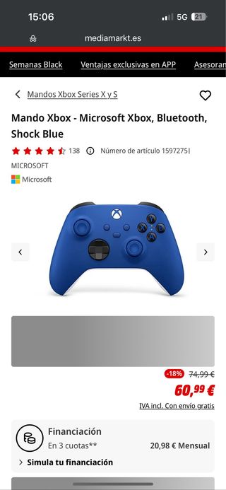 Mando de Xbox en color Shock Blue. Conexión Bluetooth. - Color: Shock Blue - Conectividad: Bluetooth funciona perfectamente pero tiene drift en el joy-stick izquierdo ME DESPLAZO POR VALENCIA CIUDAD
