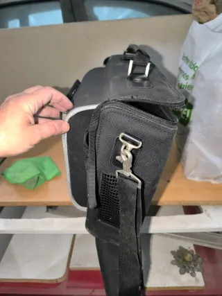 Mochila negra para Xbox 360. Ideal para transportar tu consola y accesorios. - Compartimento principal con cremallera. - Correa ajustable para el hombro. - Bolsillo lateral de malla.